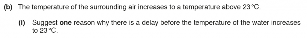 b. i. The delay is because glass is a bad conductor of heat, and it takes time for water and surrounding air to reach thermal equilibrium.