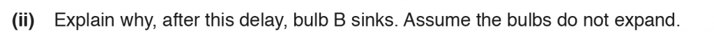 b. ii. After this delay when water reaches thermal equilibrium with the air and increases to 23o C, the bulb B at 22o C would be lower in volume and therefore more dense and will therefore sink.