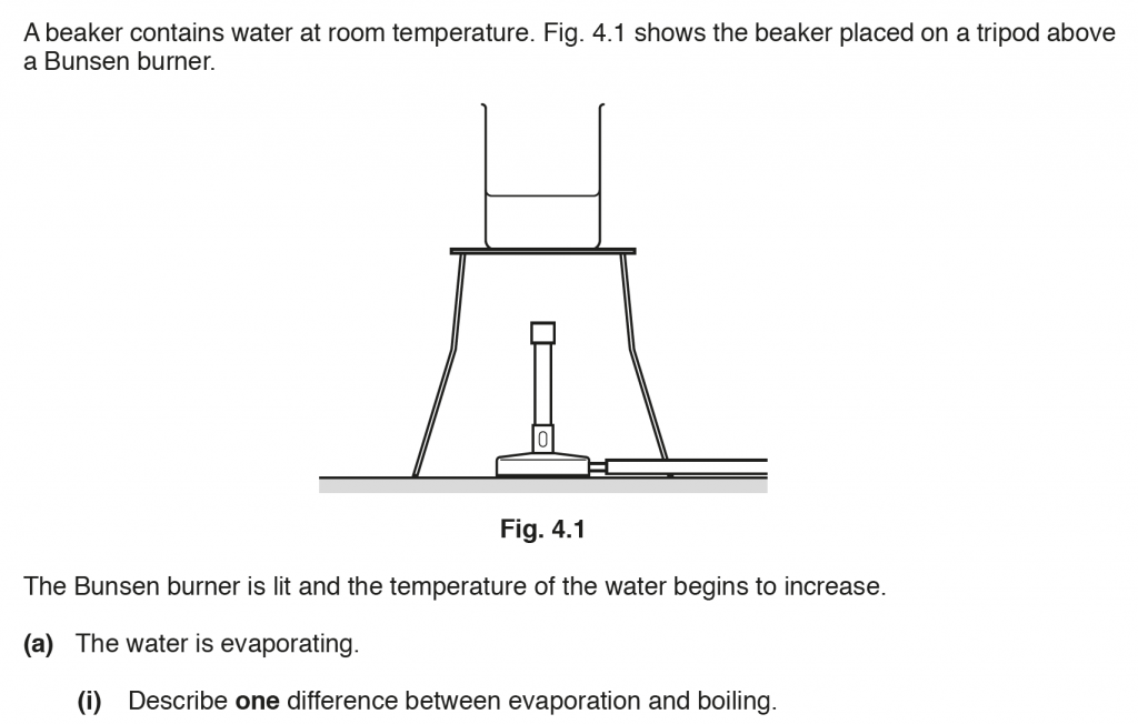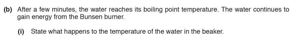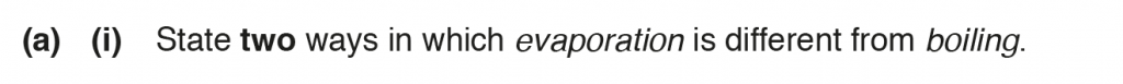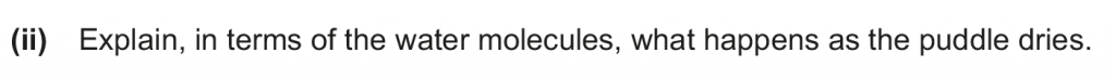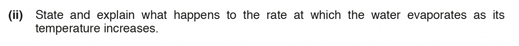 a. ii. As the temperature increases the rate of evaporation of the water increases. This is because at higher temperatures the average kinetic energy increases, and therefore there will be more molecules at higher energies so more molecules will leave or evaporate.