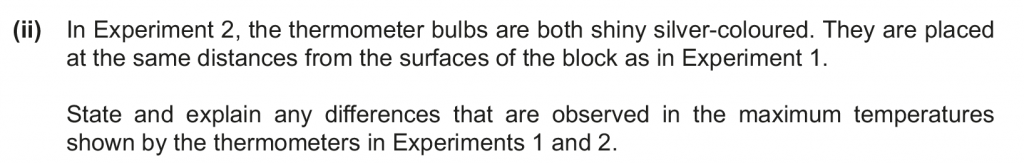 b. ii. The maximum temperatures in experiment 2 would be lesser as shiny silver-coloured bulbs reflect more and absorb lesser.