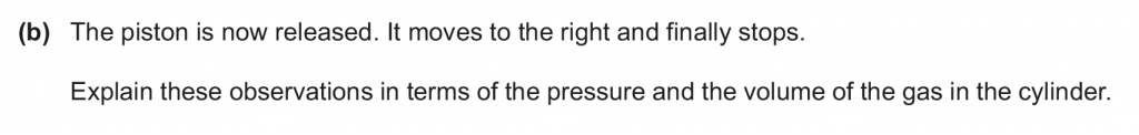 b. Because of the pressure the gas exerts on the piston, it exerts a force on it, due to which it pushes the piston to the right, the volume increases, and thus the pressure decreases, due to which the force decreases and the piston comes to a stop.