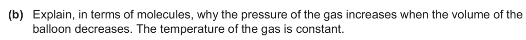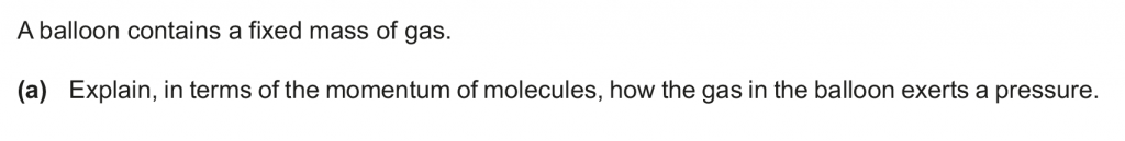 a. On colliding the momentum of the molecules changes because of the impulse exerted by the balloon on the gas molecules, and thus the gas molecules exert an impulse on the balloon, resulting in a pressure.