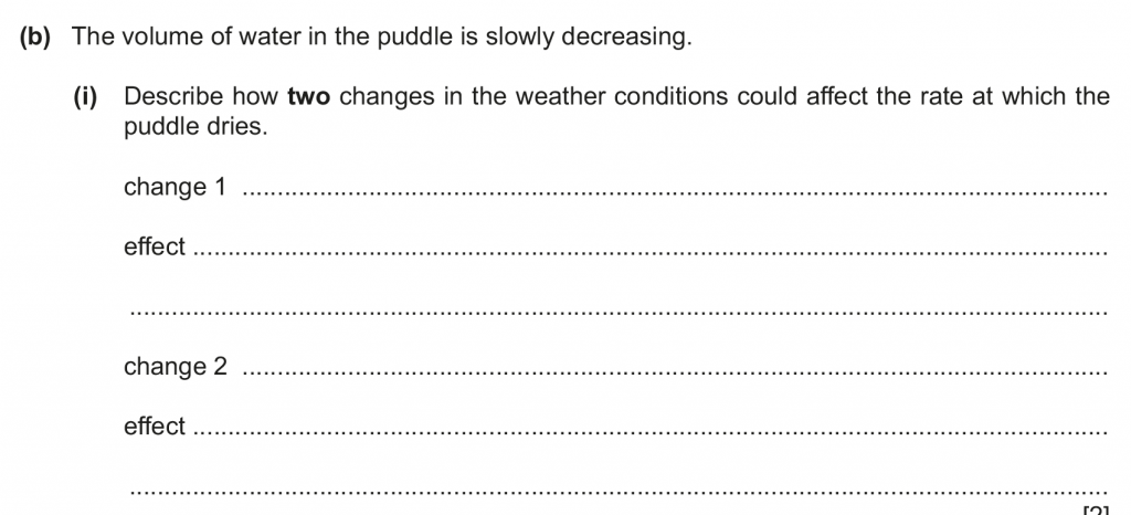 b. ii. The more energetic of the water molecules leave the surface as the puddle dries, thereby taking some heat from the surface cooling it down.