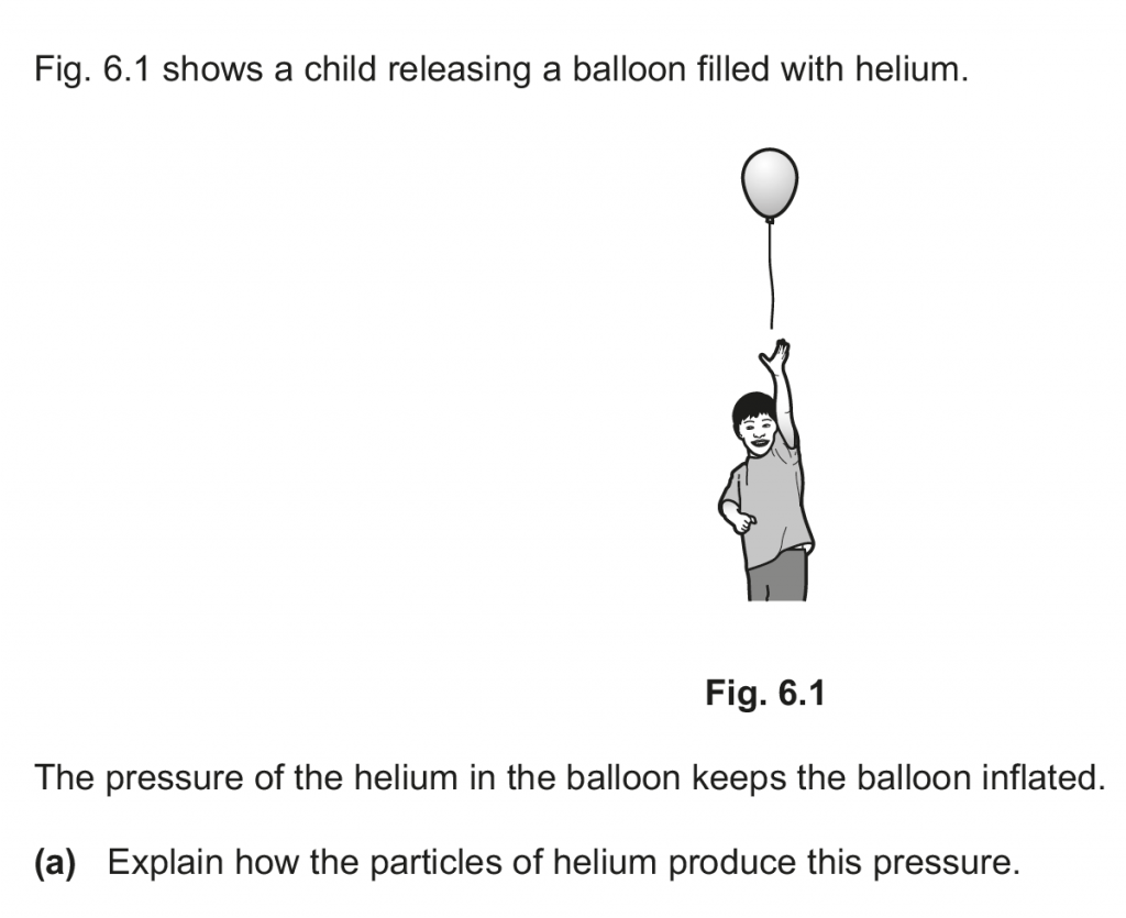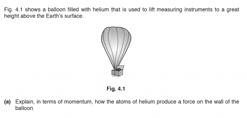 a. The helium atoms on collisions with the balloon walls undergo a change in momentum and therefore a force, to which they react to apply a force on the balloon.