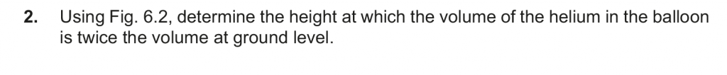 2. For volume to be twice the pressure must be half. Which will be at h = 3800 m.
