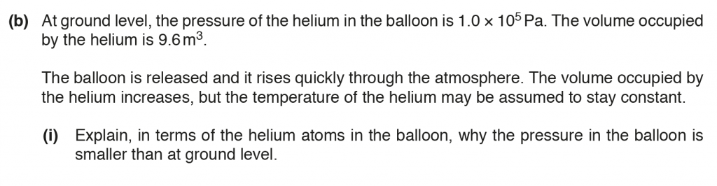 b. i. The pressure is smaller at a height above the ground level, because, the volume occupied by the helium increases, so the frequency of collisions decreases.