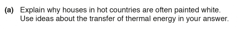 a. The houses in hot countries are often painted white so they reflect most of the thermal energy incident on it, and absorb less of it and thus not get heated up too much.