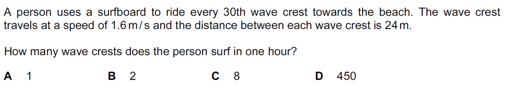 Number of wave crests he goes through = n = 5760/ 24 = 240.