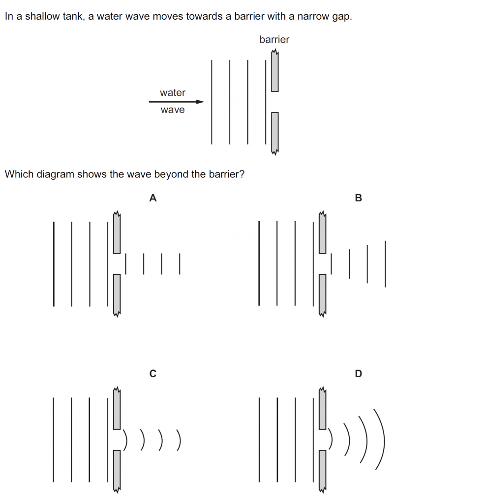 The greatest spreading or diffraction takes place of the waves passing through a gap of dimension comparable to the wavelength of the incident wave, so B.