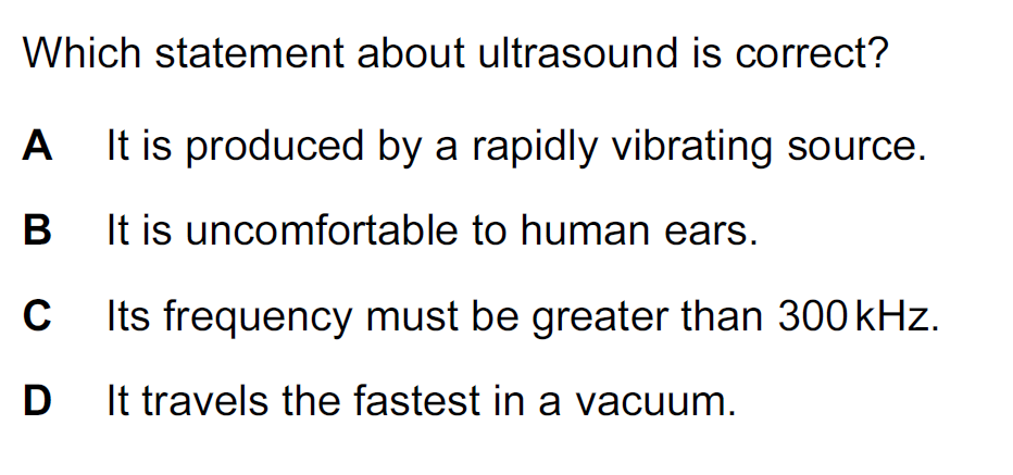 Ultrasound waves are sound waves of a very high frequency, produced by a rapidly vibrating source.