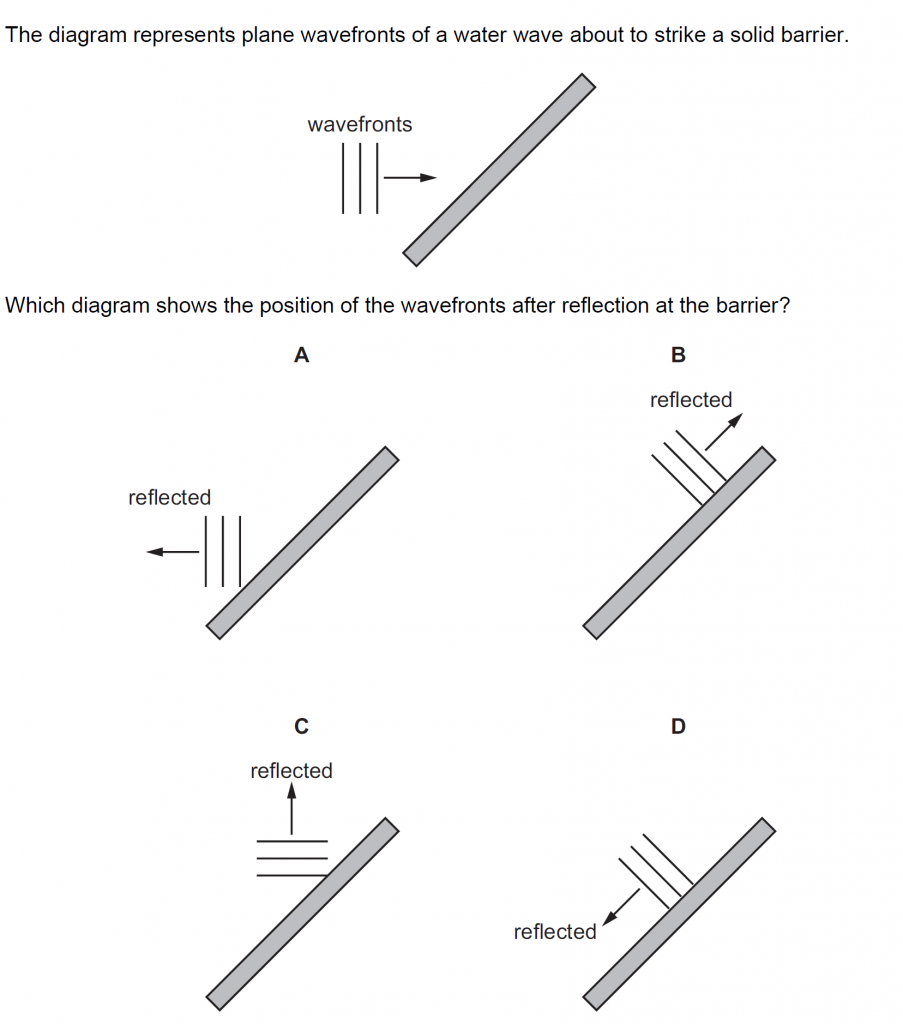 After reflection the wavefronts will make an equal angle with the solid barrier, as on being incident, so