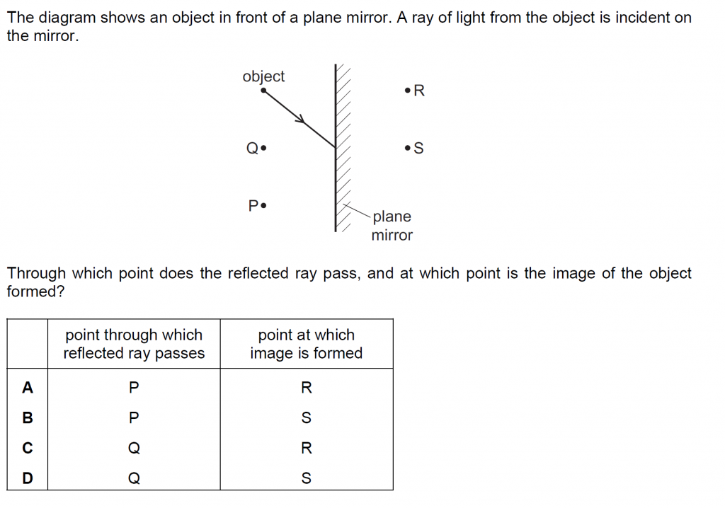 Reflected ray will pass through P, as the angle of reflection = angle of incidence, and the image will be formed at R, equidistant from the mirror as the object is.
