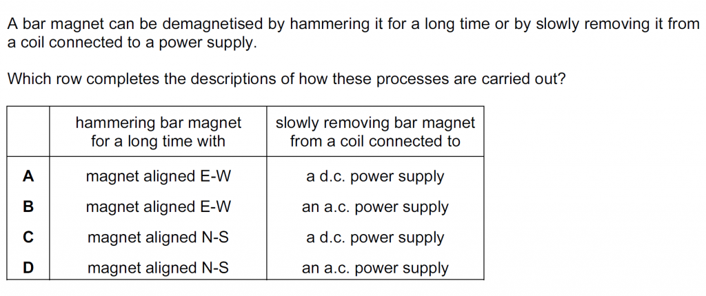 The magnet is demagnetised by hammering it to de-align the molecular magnets within the bar magnet, so,