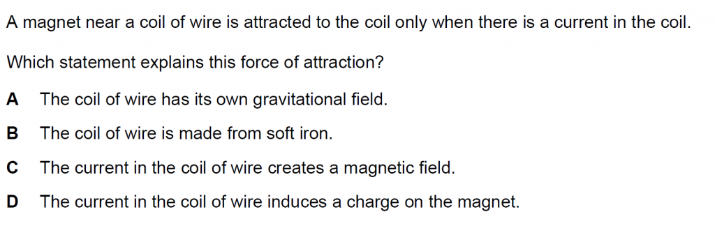 The current in the coil creates a magnetic field identical to a bar magnet, and will therefore attract the magnet placed near it.