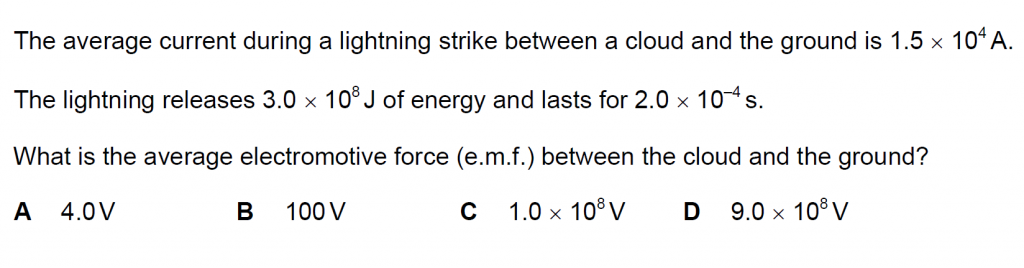 So, e.m.f. = 3.0 x 108/ 3.0 = 1.0 x 108 V.