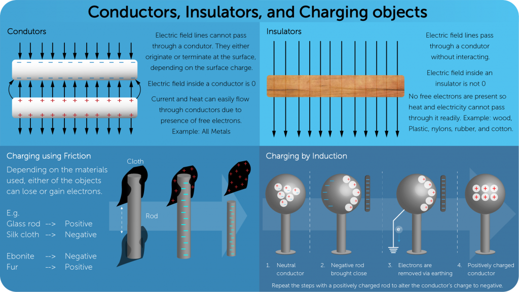 - Electric field lines cannot pass through a conductor – they terminate at the conductor, as the field inside a conductor is zero.