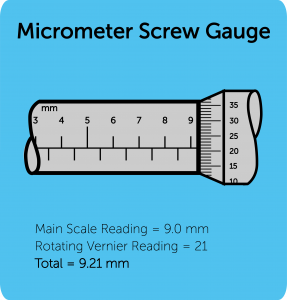 Total Value = Main scale reading + circular scale reading (Least Count)