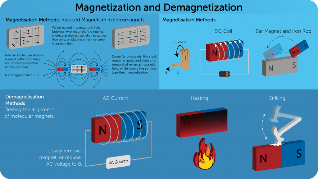 - The temporary magnetization of a magnetic material can be performed by induced magnetism.